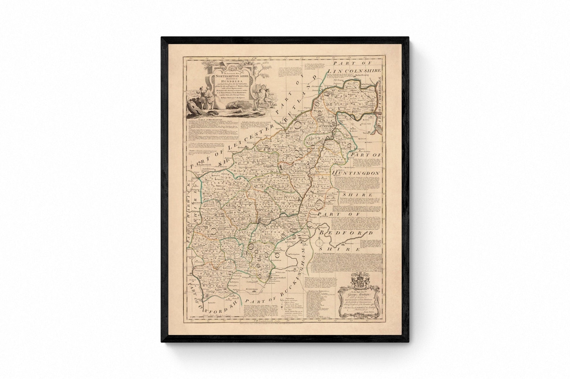 This antique-style map of Northamptonshire Map Dated 1760 is a high-quality reproduction of a Victorian engraving. Originally produced in the 1800s, it¡¯s ideal for those who appreciate historical cartography and vintage wall art.