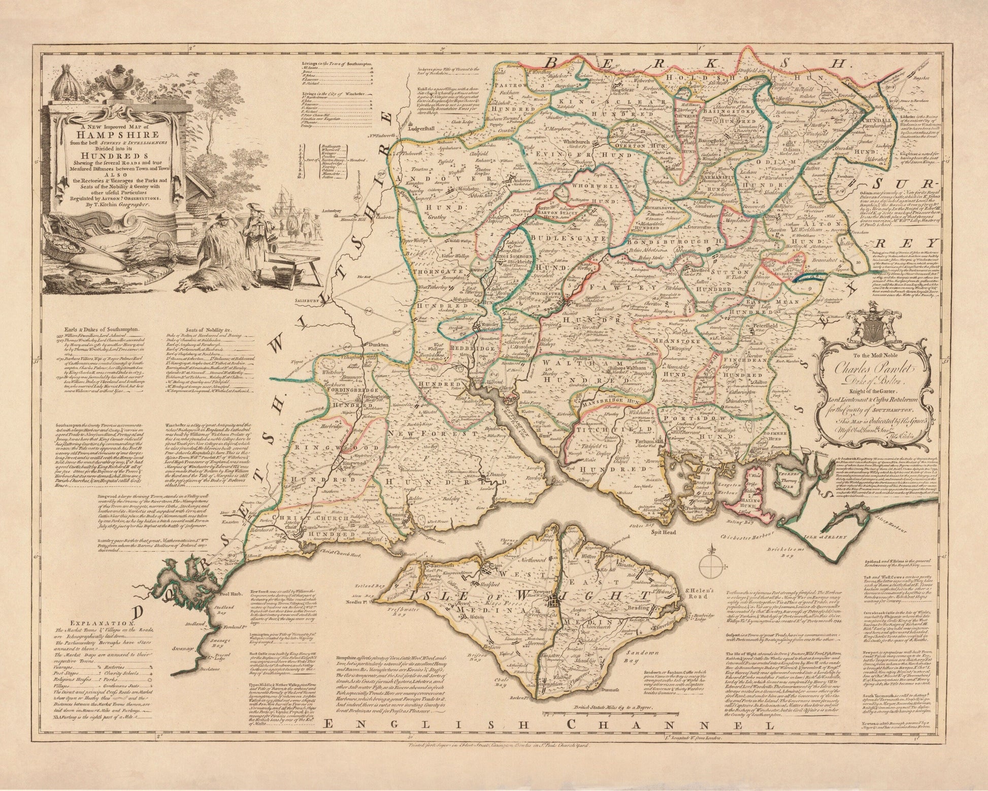This antique-style map of Hampshire Map Dated 1760 is a high-quality reproduction of a Victorian engraving. Originally produced in the 1800s, it¡¯s ideal for those who appreciate historical cartography and vintage wall art.