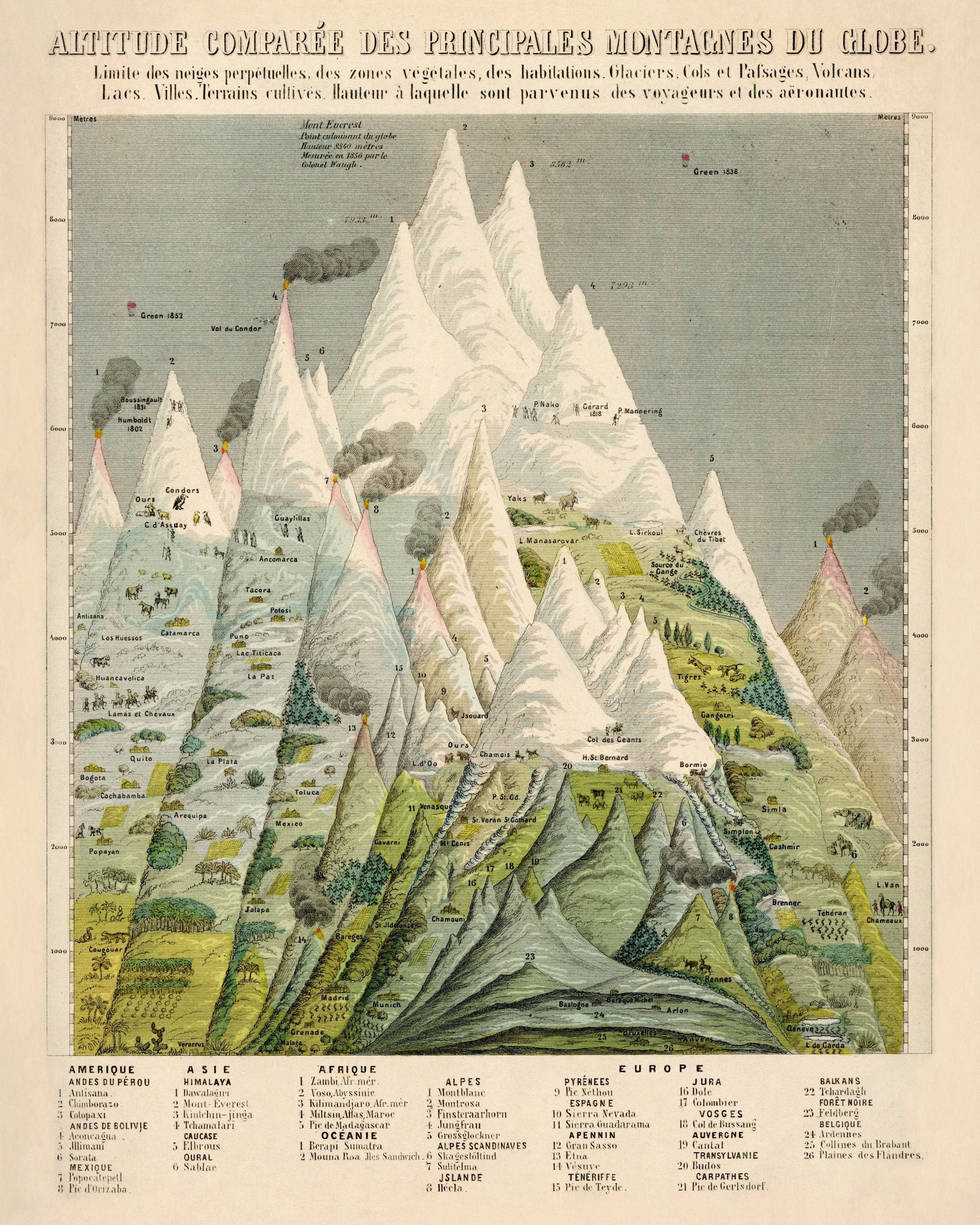 This vintage reproduction of Mountain Comparison Diagram is a faithful representation of an original 19th-century engraving ¡ª perfect for classic interiors and collectors of antique-style wall art.