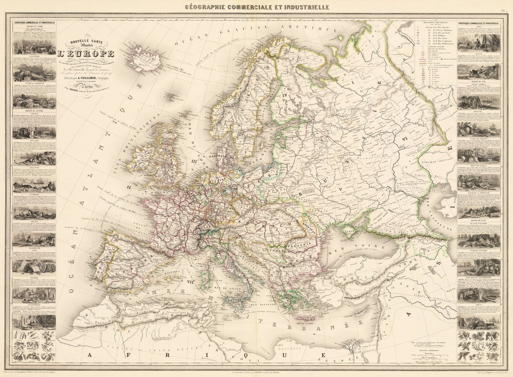 Nouvelle Carte Illustre de l'Europe Presentant les Grandes Divisions Physiques, la Distribution Geographique des Vegetaux et des Mineraux...