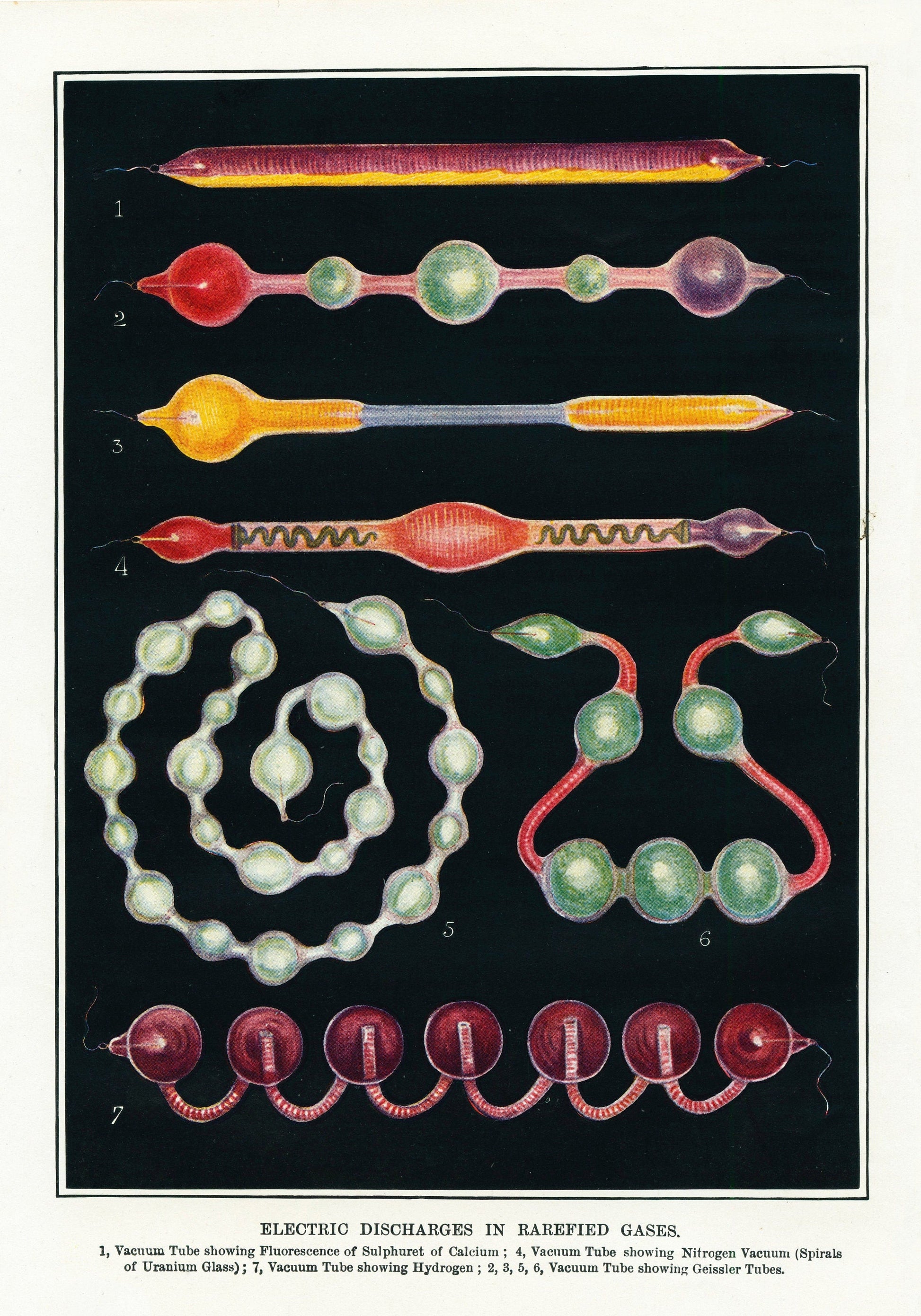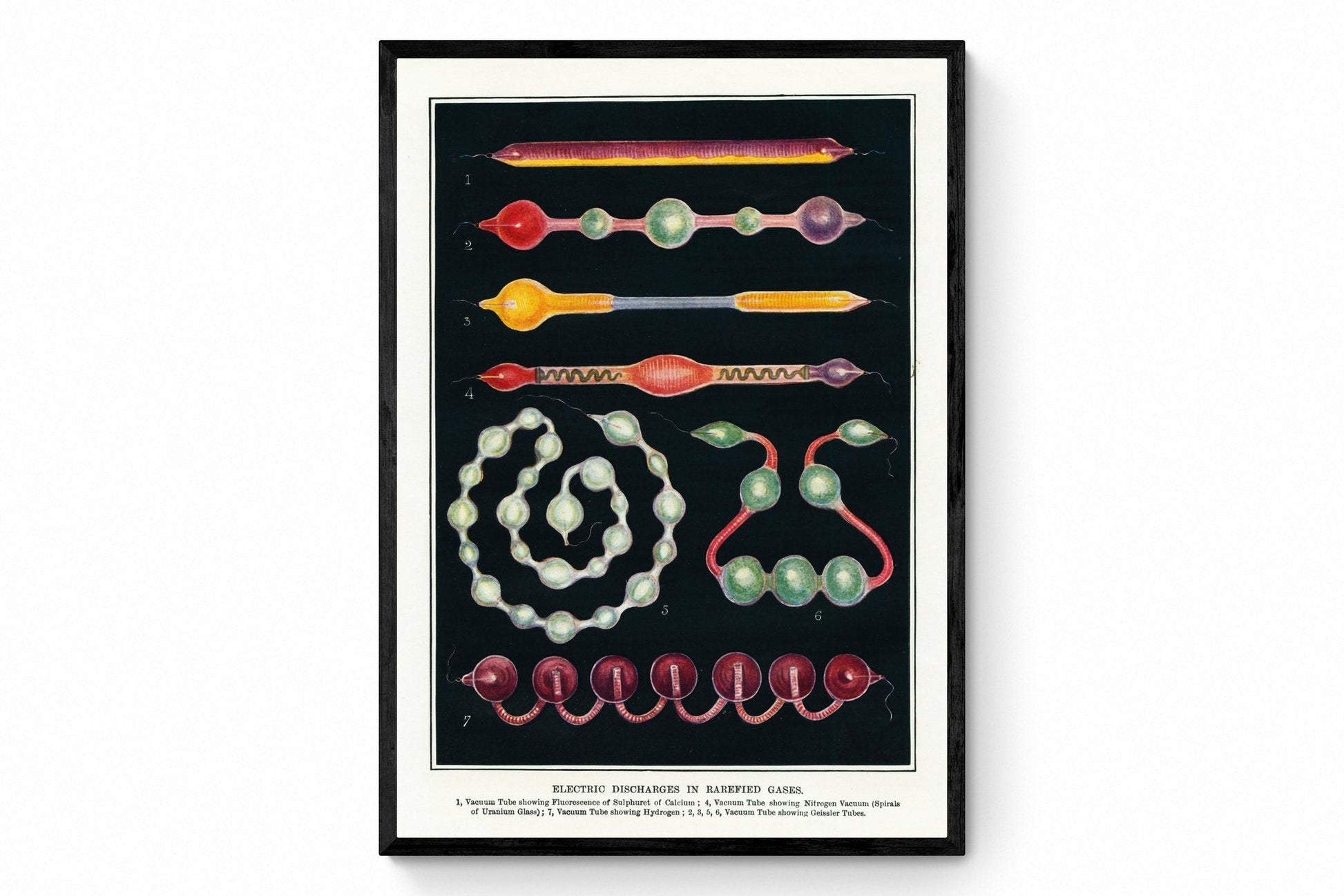 This vintage reproduction of Electric Discharges In Rarefied Gases is a faithful representation of an original 19th-century engraving ¡ª perfect for classic interiors and collectors of antique-style wall art.